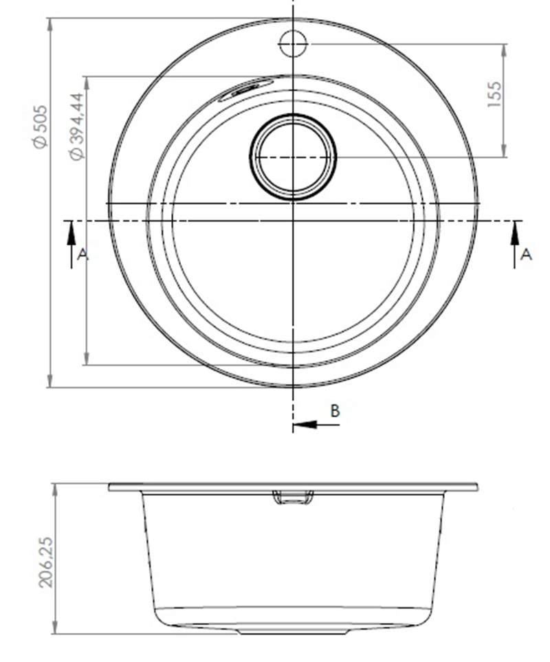 BOOGIE 10 kol. 81 beton (Ø 51) zlew Granital z syfonem manualnym