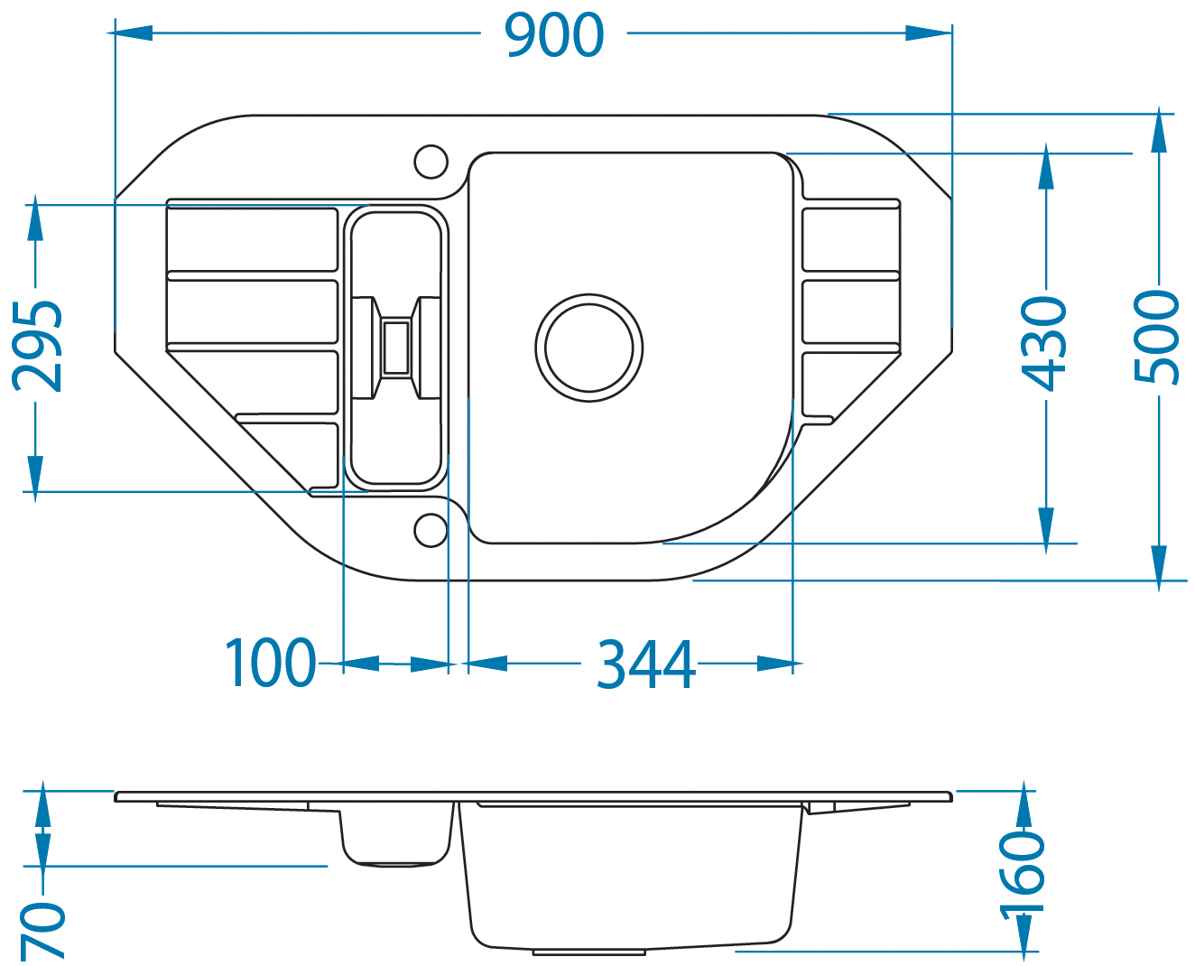 Komora pomocnicza - dodatkowa, mniejsza komora pomocnicza nadaje się do odsączania owoców i warzyw lub odcedzania. Dzięki swoim kompaktowym rozmiarom nie zajmuje dużo miejsca, zachowując niewielkie wymiary zlewu.