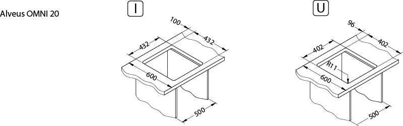 Wybór spośród 2 sposobów montażu - możliwość montażu w klasyczny wpuszczany sposób [I] lub w elegancki podwieszany [U]: Daje klientom możliwość wyboru preferowanego sposobu montażu, dopasowanego do ich indywidualnych potrzeb i stylu kuchni.